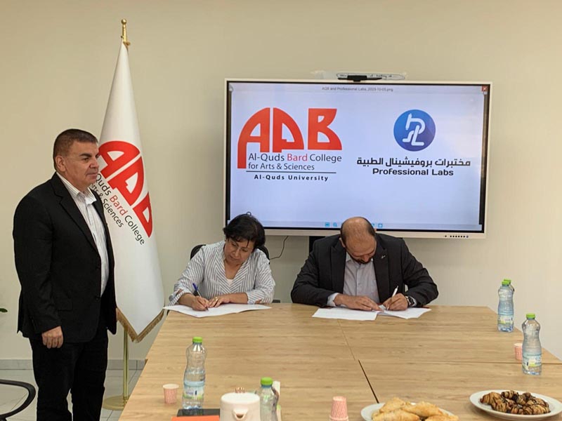 unday, October 5, 2025 – Al-Quds Bard College of Arts and Sciences at Al-Quds University and Professional Laboratories signed a cooperation agreement aimed at providing specialized practical training programs for our students of the Molecular Genetics Department, in addition to supporting joint research projects.