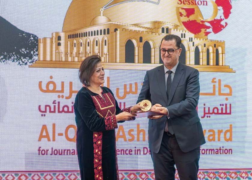 Alongside them, three master’s students from the Digital Media and Communication Program at Al-Quds University and a student from the Higher Institute of Information and Communication in Rabat were awarded first place across the three categories of the Al-Quds Al-Sharif Award for Journalistic Excellence in Development Media, in its third edition, named after the late journalist and founder of the Maghreb Arab Press Agency, Mehdi Bennouna, and organized by the Agency of Bayt Mal Al-Quds Al-Sharif.
